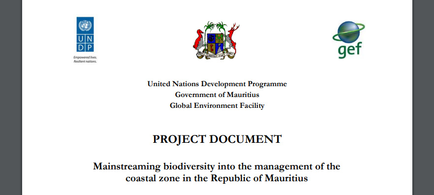 Platform Moris Lanvironnman a, depuis 2015, participé – avec un grand nombre d’autres parties prenantes – à la conception du projet (project design) Mainstreaming biodiversity into the management of the coastal zone in the Republic of Mauritius. Le document de projet (project document) final donne un bref descriptif du projet: