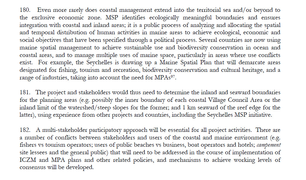 1. Deux exercices séparés ont/auront lieu pendant ce mois de juillet : une évaluation de six projets PNUD/GEF dans le cadre d’une évaluation qui se déroule dans 39 Petits Etats insulaires en développement (PEID, ou SIDS en anglais) ; et une “enquête” sur l’un de ces projets, Mainstreaming Biodiversity in the management of the Coastal Zone in the Republic of Mauritius – cette “investigation” se déroulera pendant la dernière semaine de juillet.
